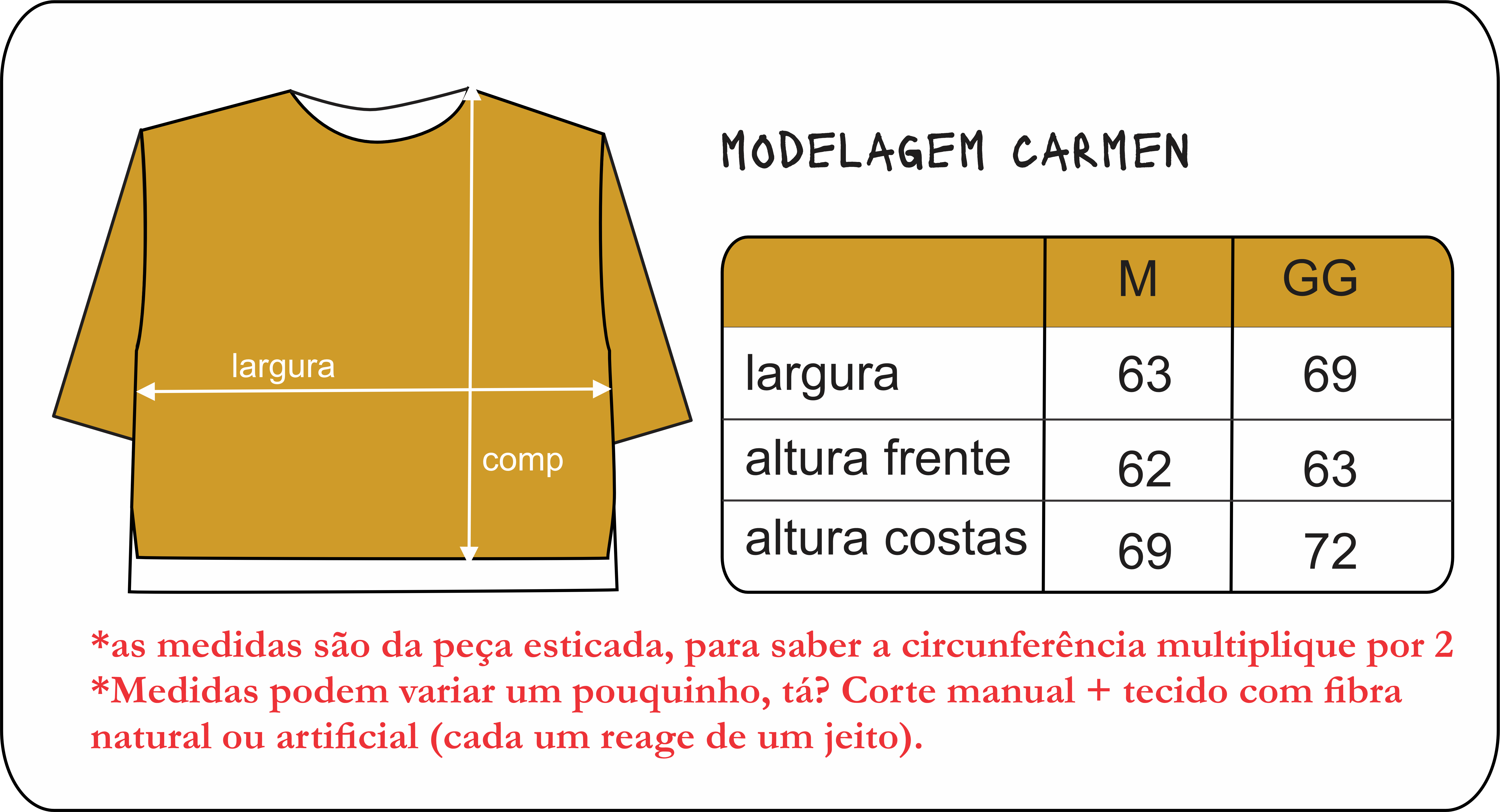 A peça tem uma etiqueta amarela atrás, feita no mesmo tecido, onde tem uma frase especial. As frases são como biscoito da sorte, você só fica sabendo qual é quando recebe a peça. A mesma peça vai ter frase diferente.